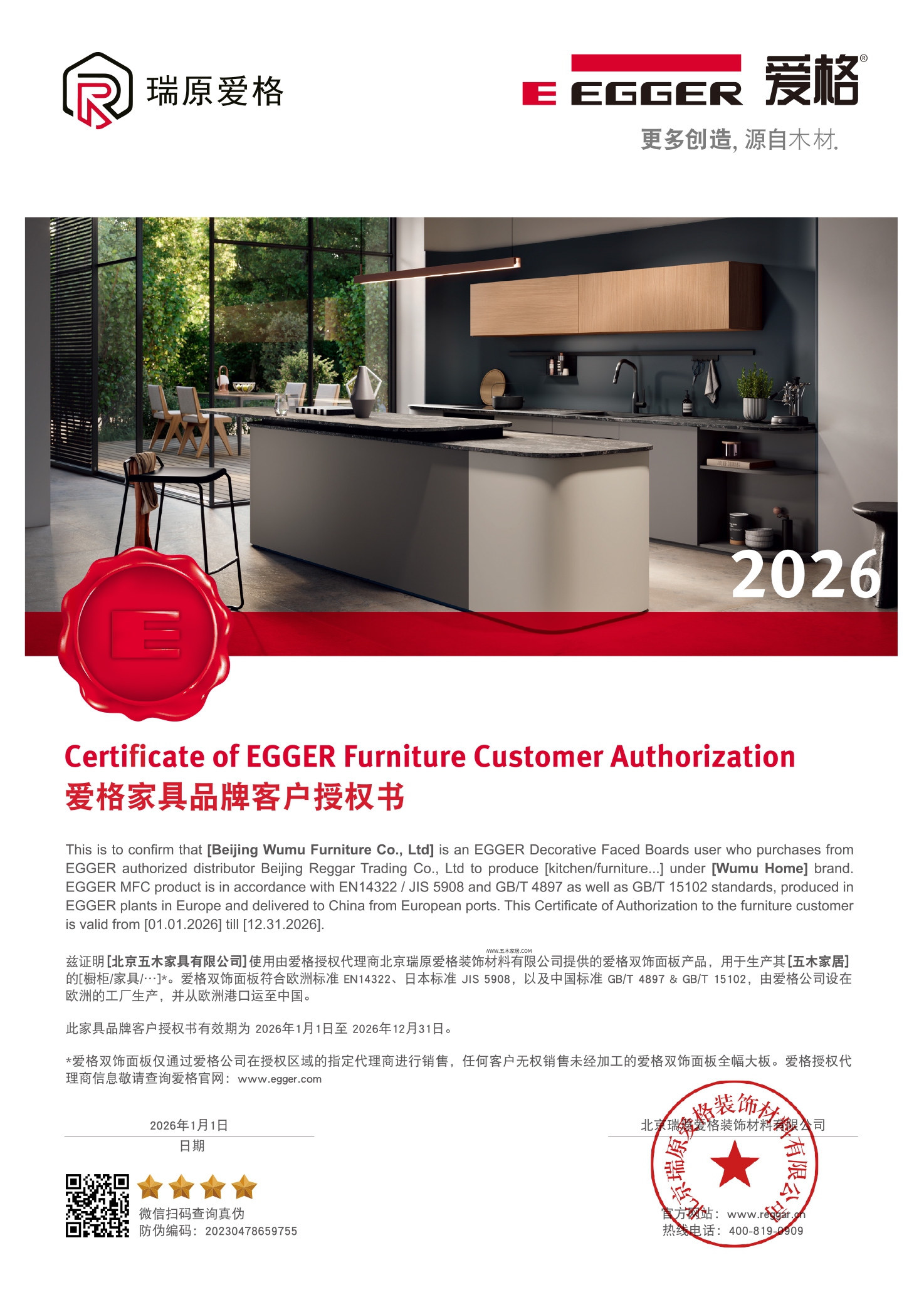 购买爱格系列产品认准五木家居爱格正品授权